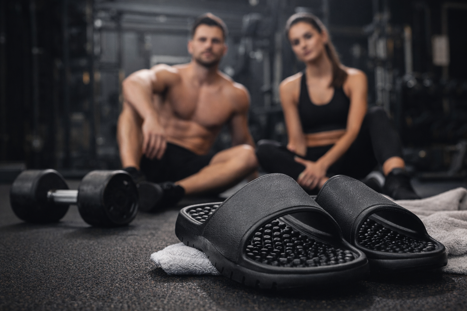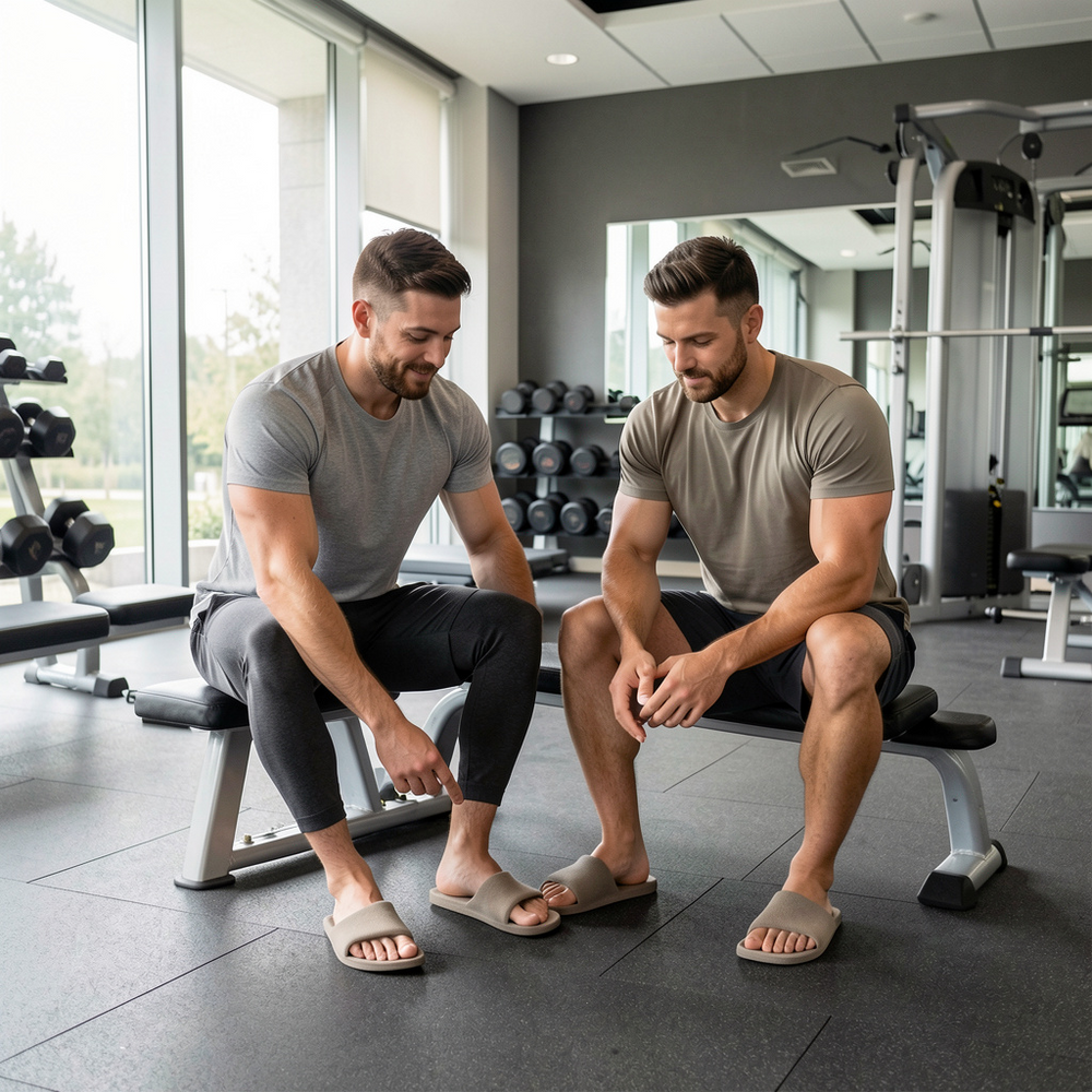 Trage deine ROVIERE Recovery Slides im Gym, zuhause oder unterwegs.