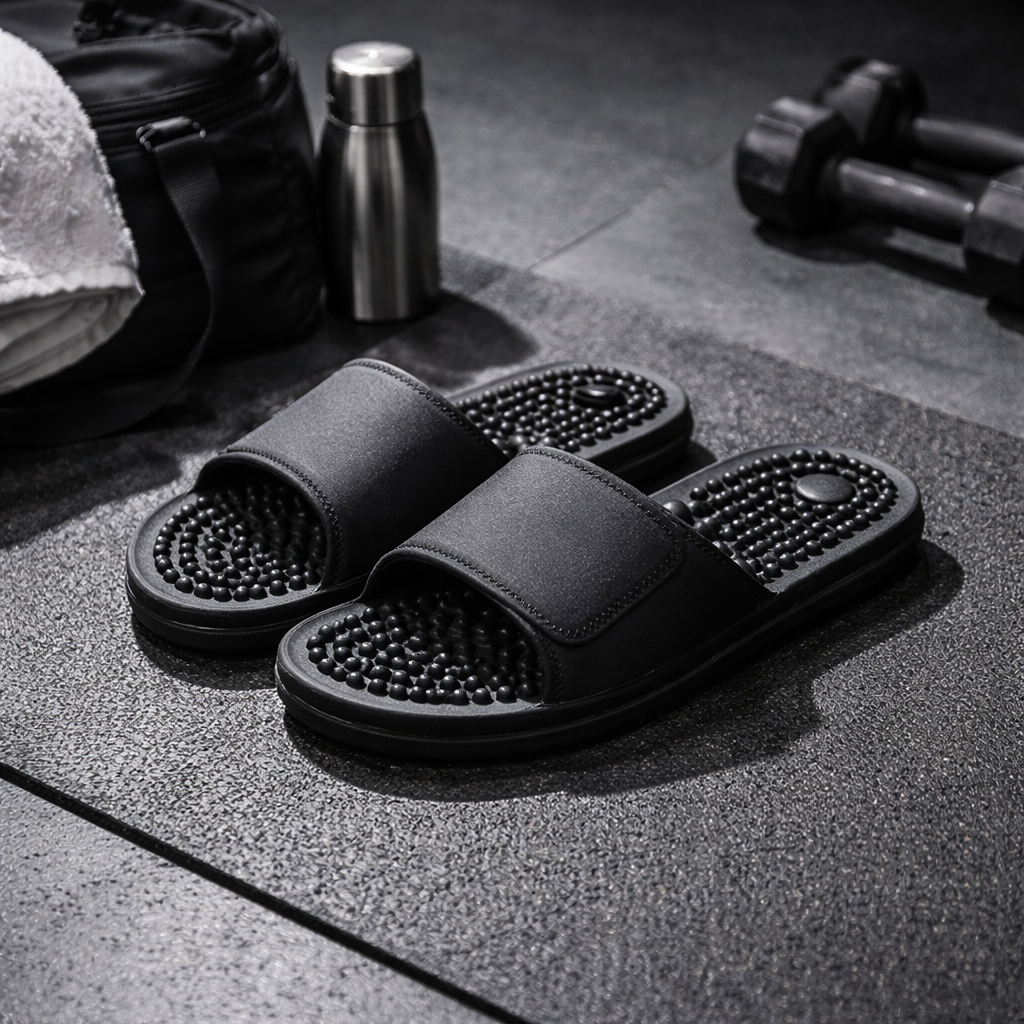 Keine müden Füße mehr nach dem Training oder langen Tagen.ROVIERE Recovery Slides aktivieren deine Fußsohlen mit sanften Massagepunkten und unterstützen deine natürliche Regeneration.Für Gym, Sommer und Alltag – für Sie & Ihn.