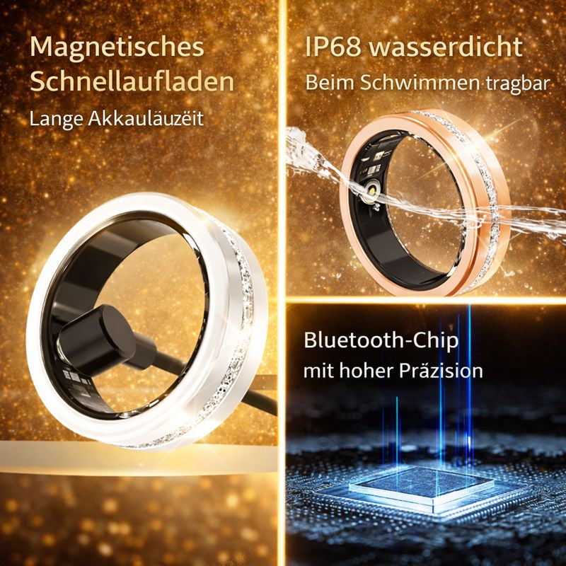 Ja! Der Ring ist wasserdicht (IP68) und für Bewegung gemacht – sei es im Alltag, beim Sport oder beim Händewaschen. Nur beim Schwimmen in Salzwasser oder beim Laden bitte abnehmen.