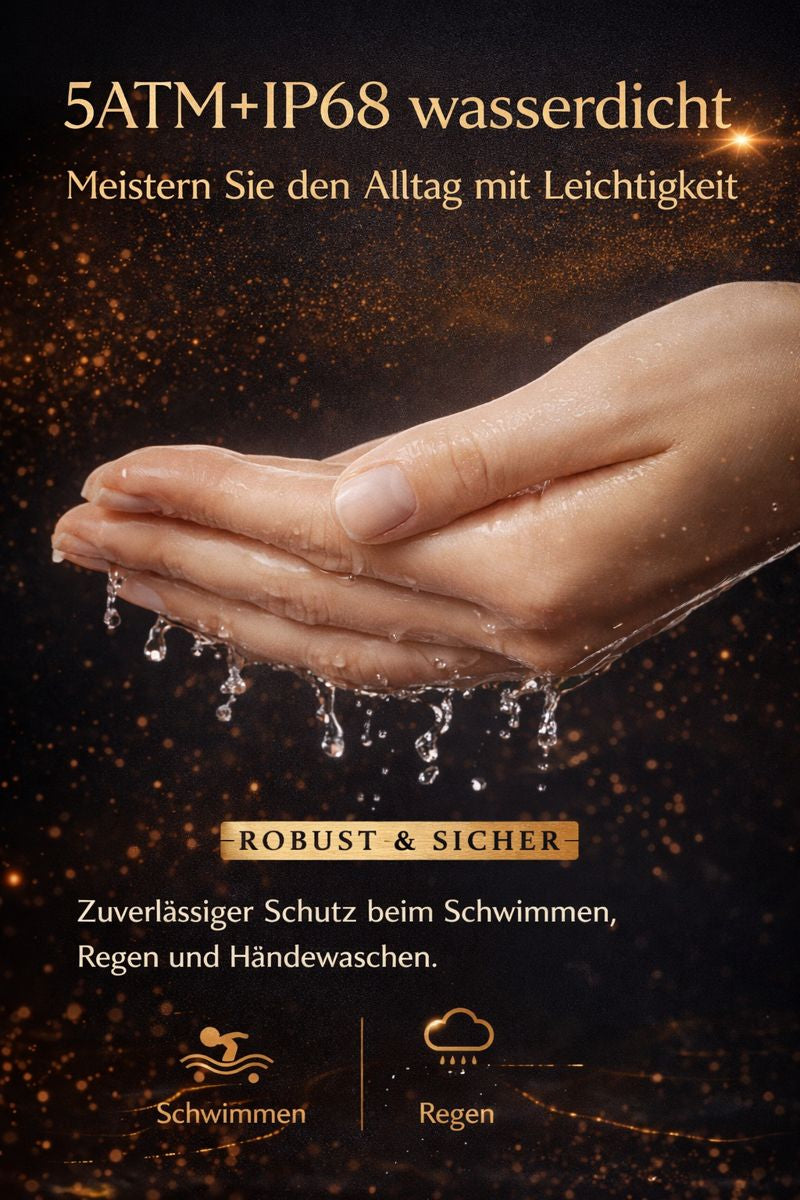 • 5ATM + IP68 wasserdicht – duschen, schwimmen, Hände waschen kein Problem