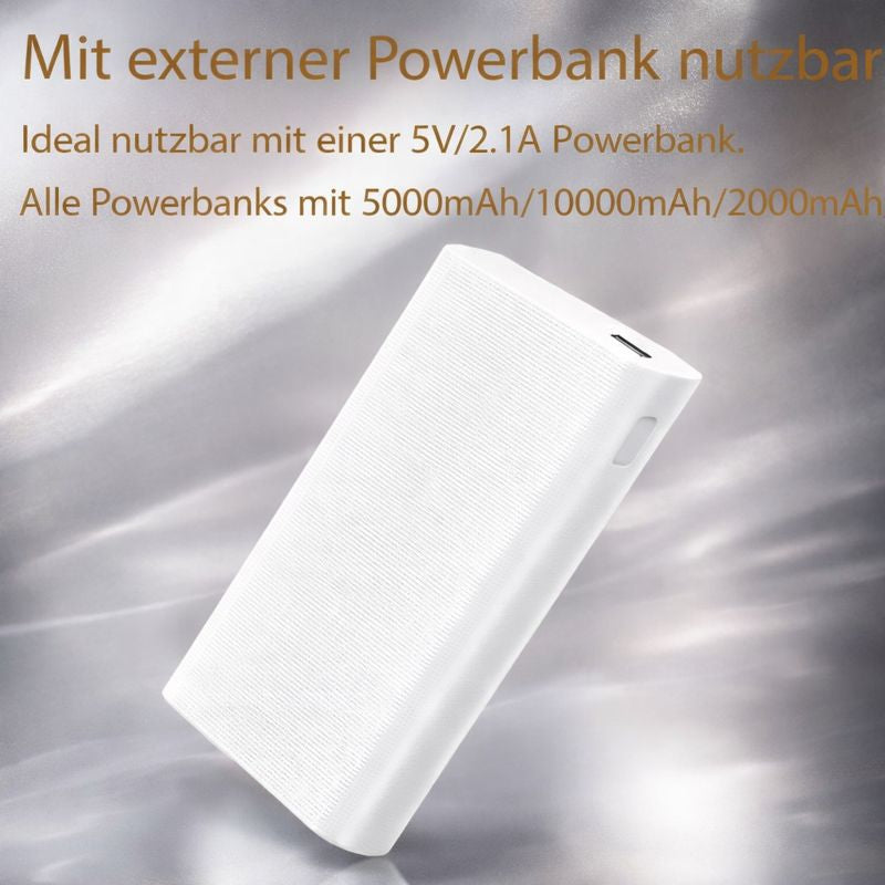 USB-betrieben (DC 5V / 10W) – funktioniert mit jeder Powerbank (nicht enthalten)