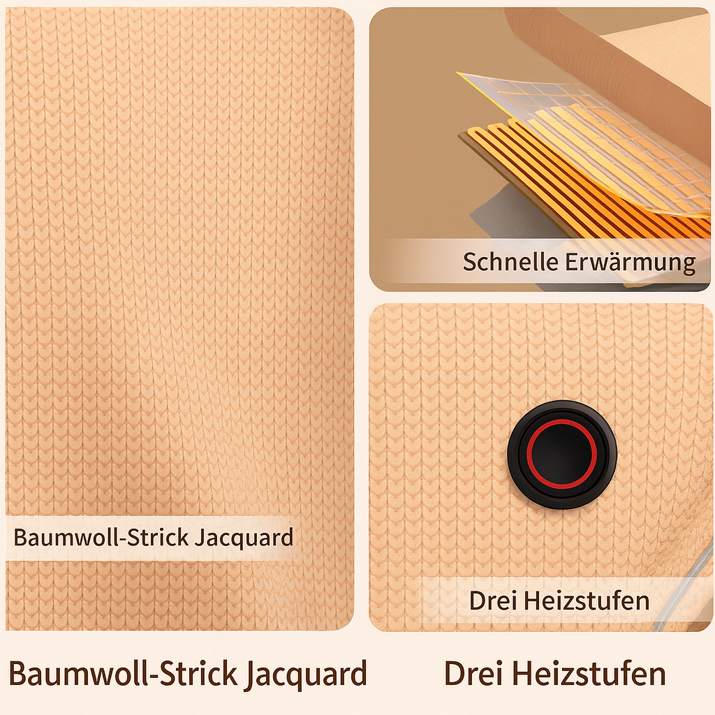 Premium-Fleece + sanfte Wärme durch Powerbank verbinden Komfort mit Design – damit du in jeder Sekunde zur Ruhe kommst und neue Kraft tankst.